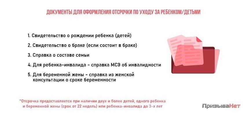 - Условия жизни: Если за детьми ухаживает родственник, например бабушка, или если семья живет в отдаленном районе, эти условия могут не являться достаточным основанием для отсрочки. Однако если человек является основным кормильцем и у него нет альтернативной возможности ухаживать за детьми, это может повлиять на решение.