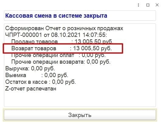 После закрытия смены магазина в отчете можно увидеть все количество возвращенного товара. Эта ситуация может принимать следующие формы.
