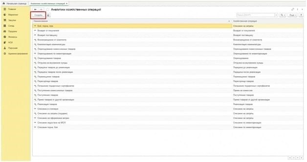 Чтобы определить причину возврата товара, необходимо зайти в раздел «Покупки», перейти на вкладку «Деловые операции» и нажать на верхнюю часть экрана «Создать».